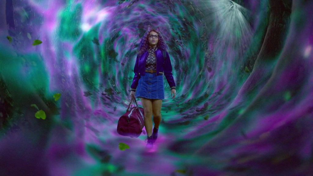 Monster High: The Movie uses songs to reinforce the film’s themes of self-acceptance, individuality, empowerment, and friendship. While in the original films, this is a common occurrence, the use of song in the live-action film, unfortunately, falls very short. The song ‘Coming Out of The Dark’ is an example of this. Sadly, everything about this moment in the film is lacklustre. The budget of the film (between $1-5 million) is disappointing but expected when looking at the quality of the film. The CGI where Clawdeen (Miia Harris) walks through the portal to Monster High is an example of this atrocity.